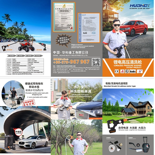 | HH50 | 无绳高压清洗机 | 电压:20V 带锂离子电池 电池容量:2500mAh/5000mAh 额定压力:6.5-28bar 工作流量:1.6-3.0L/min 充电时间:2-4小时